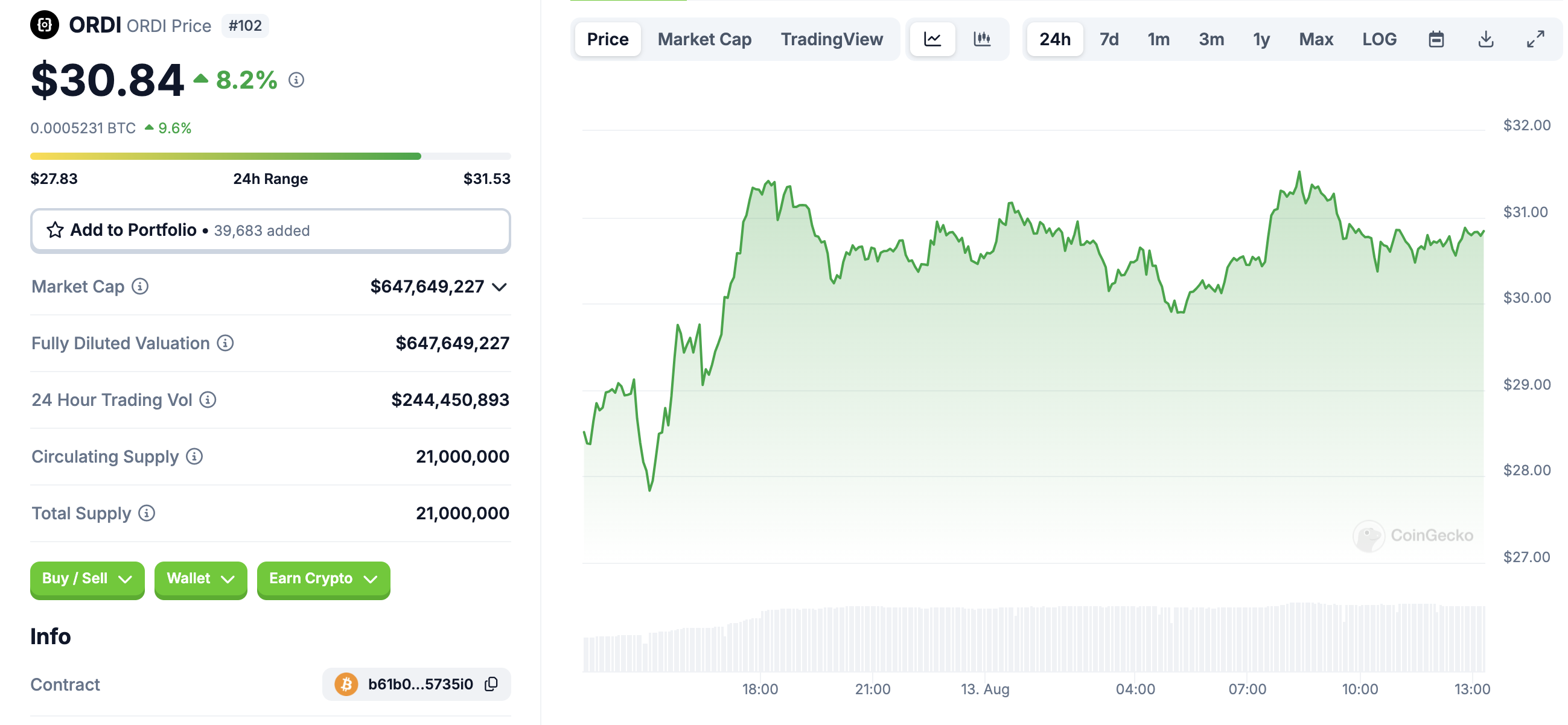 However, ORDI isn’t the only BRC-20 token showing this kind of performance; 1000SATS (SATS) is experiencing similar trends. As of now, ORDI’s price is $30.83, marking an 8.20% increase in the last 24 hours.