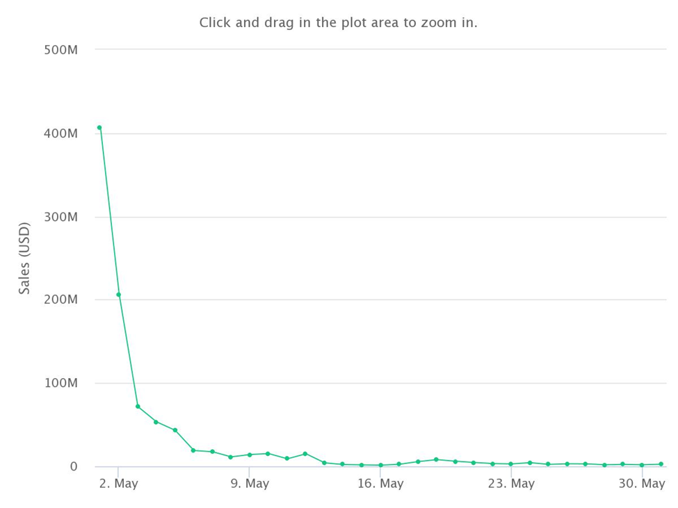 By recording less than $50 million, Otherside reached a new low in 2022 which was a 903.16 million decrease in sales from May.