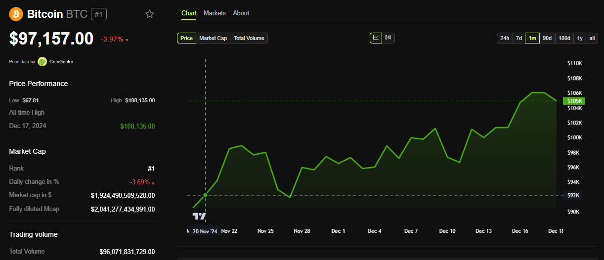 Of note is that these expiring options come after Bitcoin retracted to $94,235. As of this writing, the pioneer crypto was trading for $97,157, down almost 4% since the Friday session opened.