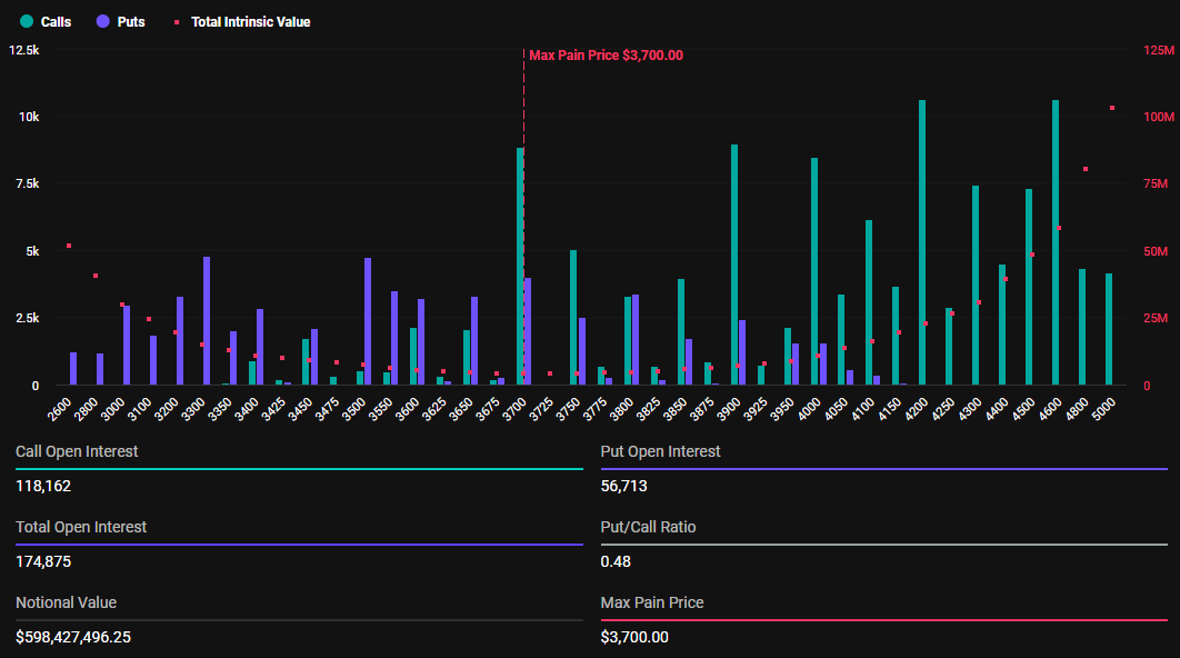 In comparison, their Ethereum counterparts have a maximum pain price of $3,700 and a put-to-call ratio of 0.48, reflecting a similar market outlook.