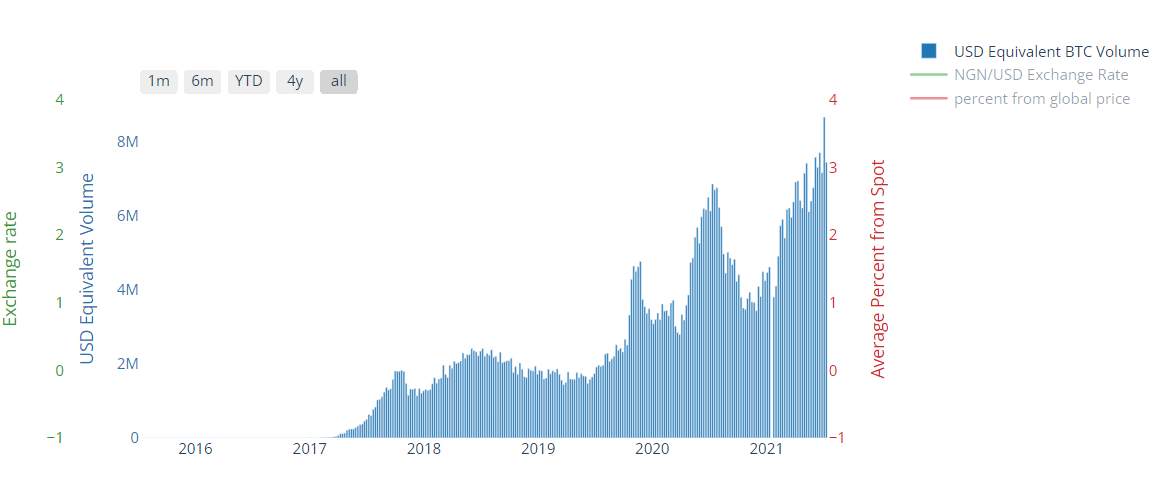 P2P platforms allow buyers and sellers to directly sell between each other, avoiding any central platform. It is often used in countries where crypto trading isn’t permitted. Currently, there is over $400 million between traded using these platforms in Nigeria.