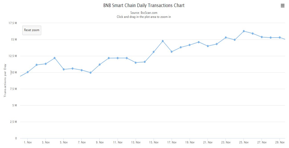 After a spike of 58% towards the last bull cycle of 2021 in November, the total transaction count for the entire month was 391,847,392.