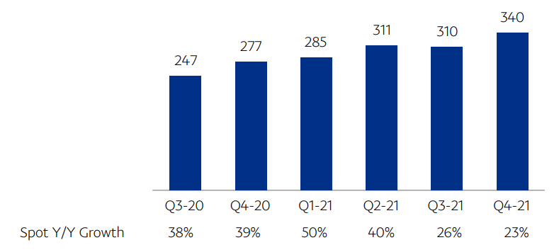 SponsoredTotal revenue generated in 2021 was $25.4 billion, representing a 29% year-on-year growth. Active merchant accounts also grew by 13% to 426 million.