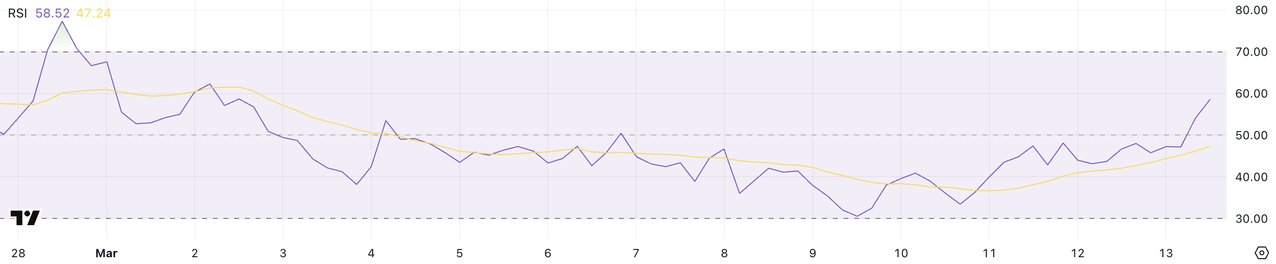 PNUT has been one of the struggling meme coins in recent months, with its price dropping 35% in the last 15 days. However, its RSI has been steadily rising, jumping from 33.4 on March 10 to 58.5 now.