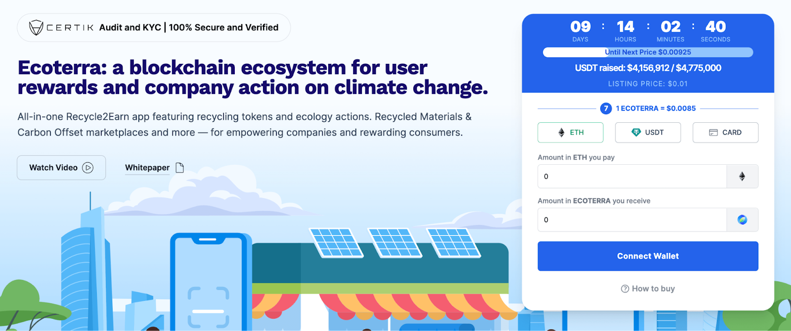 At the time of writing, Ecoterra is still in its presale phase – yet has raised over $4.1 million thus far.