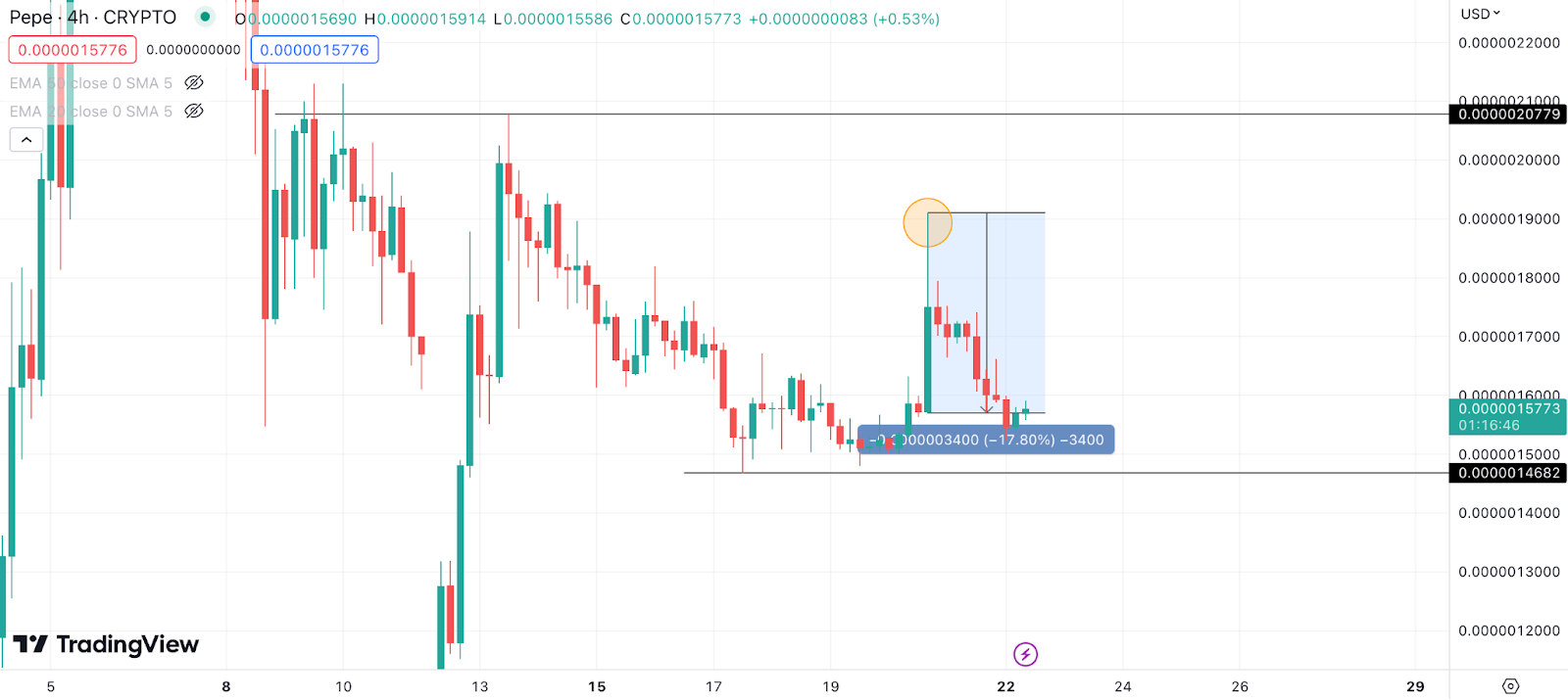 The recent bearish momentum shows no signs of stopping either, with $PEPE’s price falling by 7.3% on Sunday.