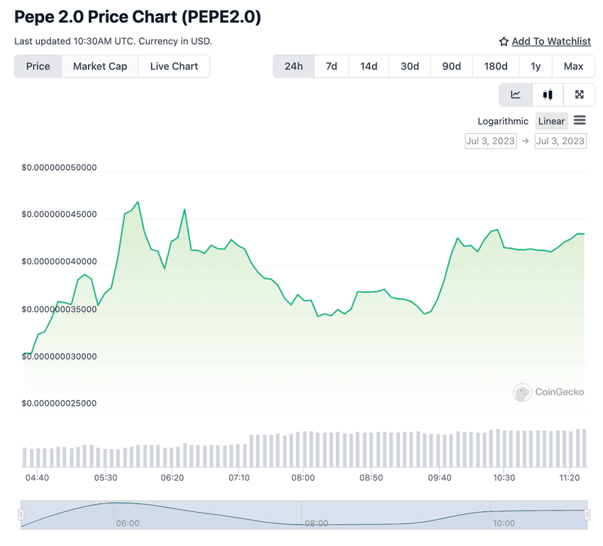 According to CoinGecko, $PEPE2.0 is up 36% in the past day, with trading volume exceeding $12.4 million.