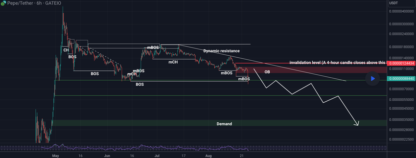 Yet, it has once again begun to crash. This comes after weeks of sell pressure pushing the price -85% from its all-time high (ATH), currently trading at $0.0000006359.