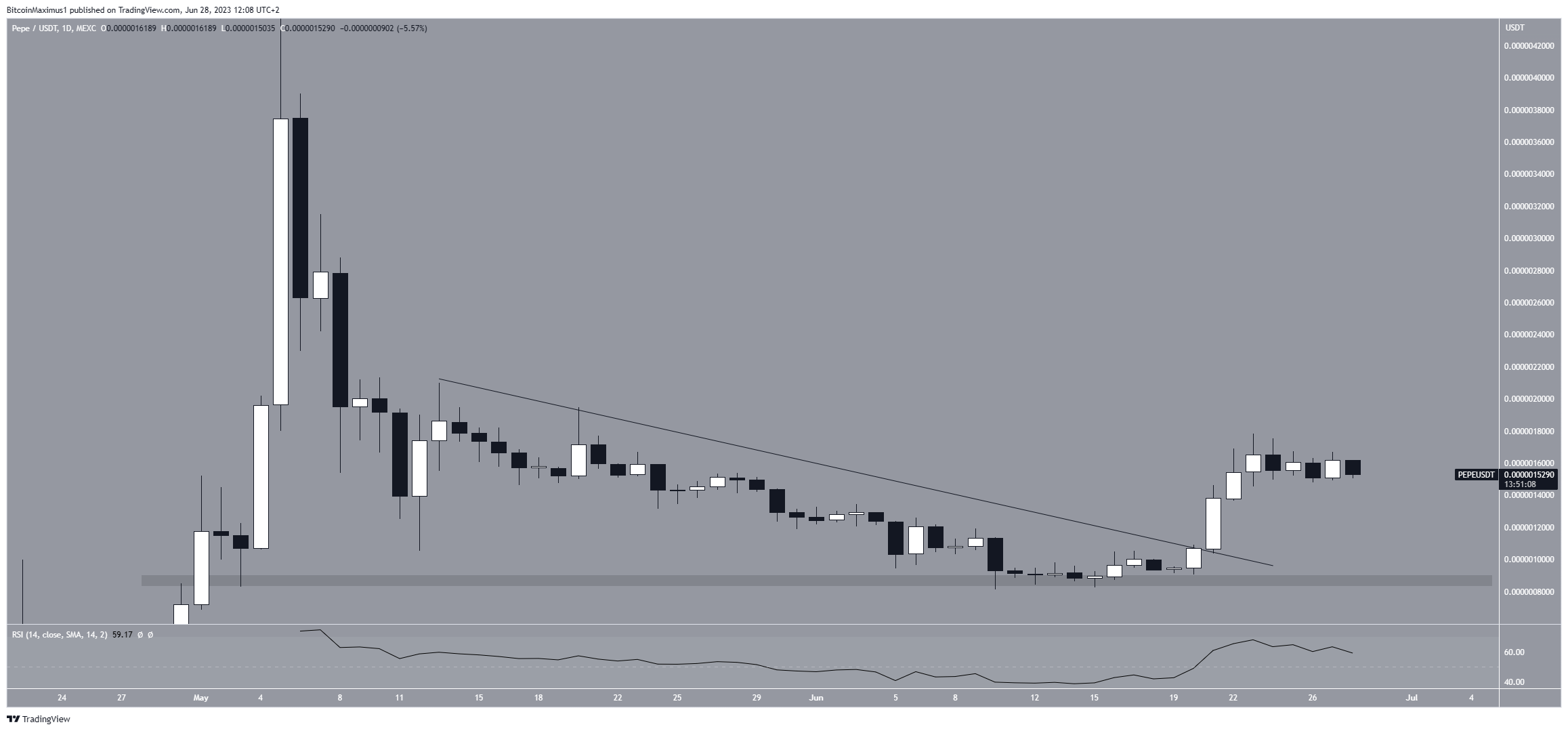 The Pepe (PEPE) coin price broke out from a long-term diagonal resistance line and reached a new monthly high on June 23.