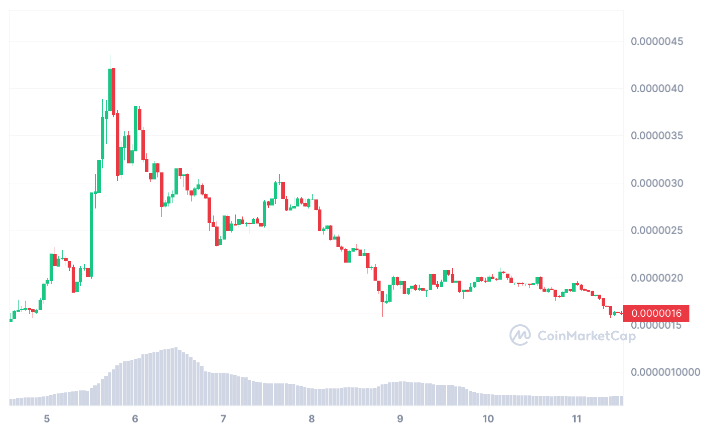 However, the past few days have seen $PEPE’s price begin to tank. At the time of writing, Pepe Coin is trading at $0.0000016 – 62.5% lower than the all-time high posted on May 5th.