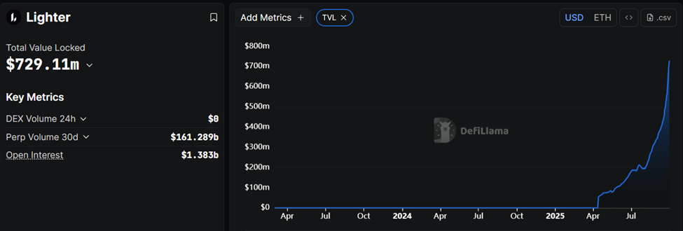 Lighter has quickly emerged as one of the hottest platforms for airdrop farming. Surpassing Hyperliquid to rank as the #2 perp exchange by volume, it now reports daily turnover exceeding $7 billion and an open interest of almost $1.4 billion.