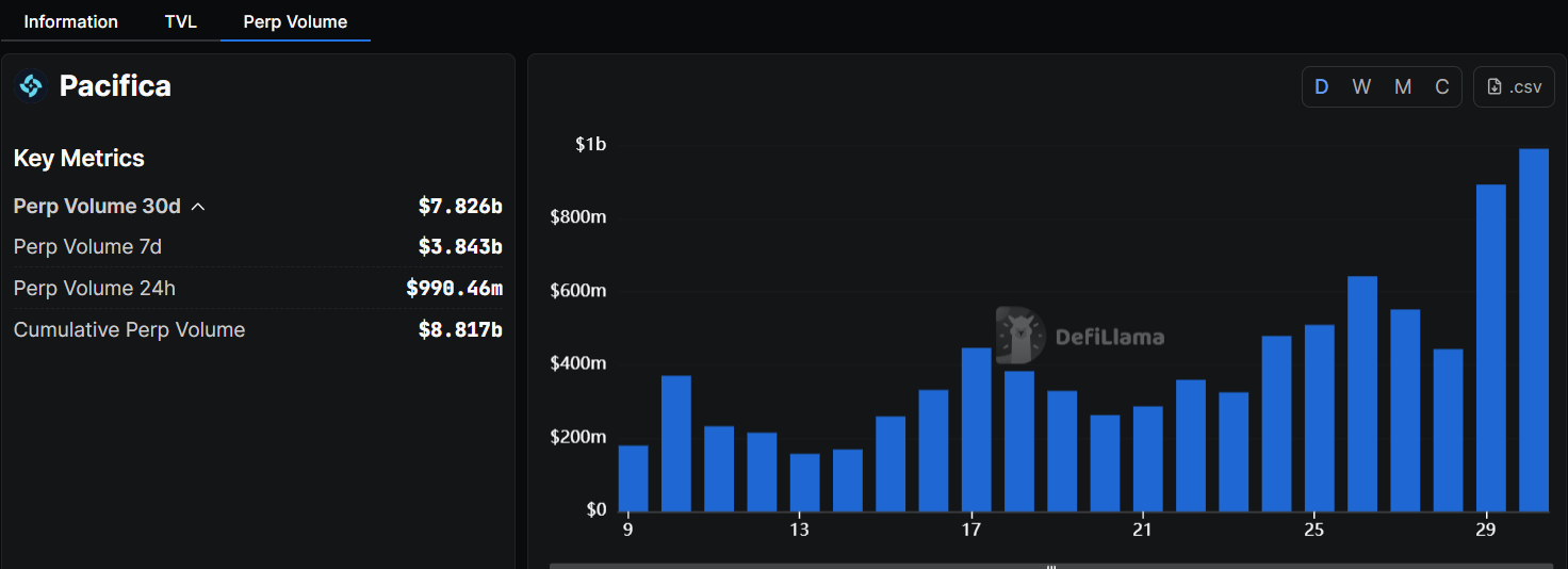 Pacifica is the dark horse on the list. Built on Solana by a former FTX team, the exchange is still in closed beta, yet it already ranks among the top 10 exchanges by trading volume.