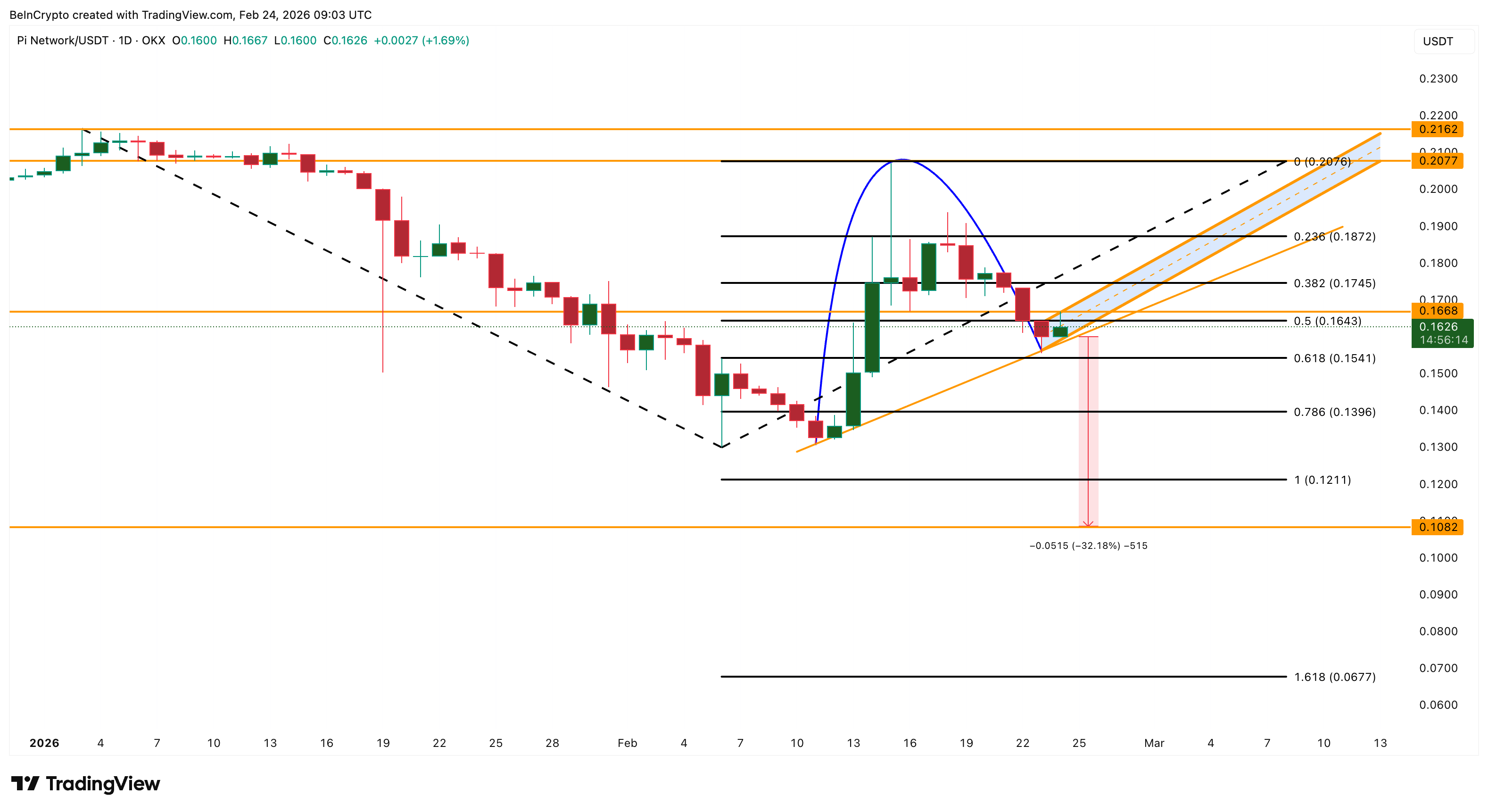 However, if Pi Coin closes below $0.154 on a daily basis, the breakdown could be confirmed. This could push Pi Coin toward $0.108 initially (a new bottom) and possibly much lower if selling accelerates.