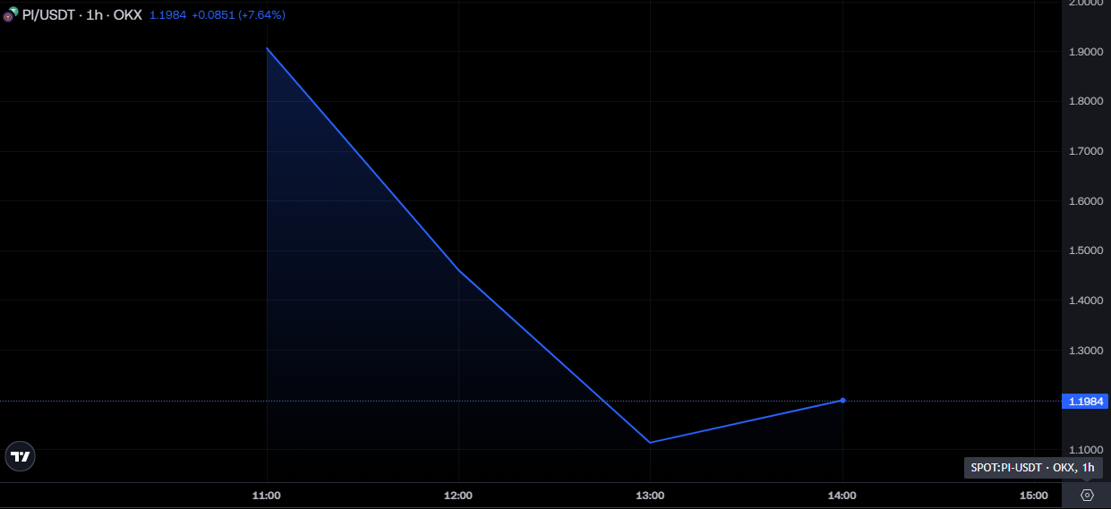 Pi Network’s PI Coin was trading for $1.1984, representing a 37% drop from its launch price.