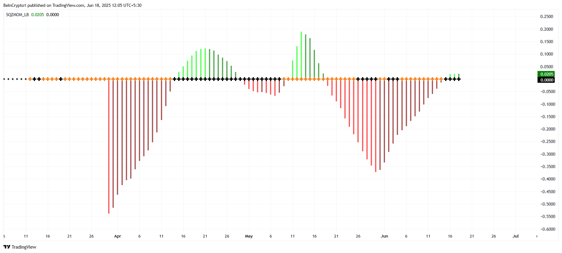 The squeeze momentum indicator is showing signs of a squeeze (represented by black dots), indicating that Pi Network’s price is consolidating before a potential breakout. The histogram accompanying the squeeze is showing an increase in green bars, signaling that bullish momentum is strengthening. This suggests that volatility is likely to increase, potentially driving Pi Network’s price upward in the coming days.