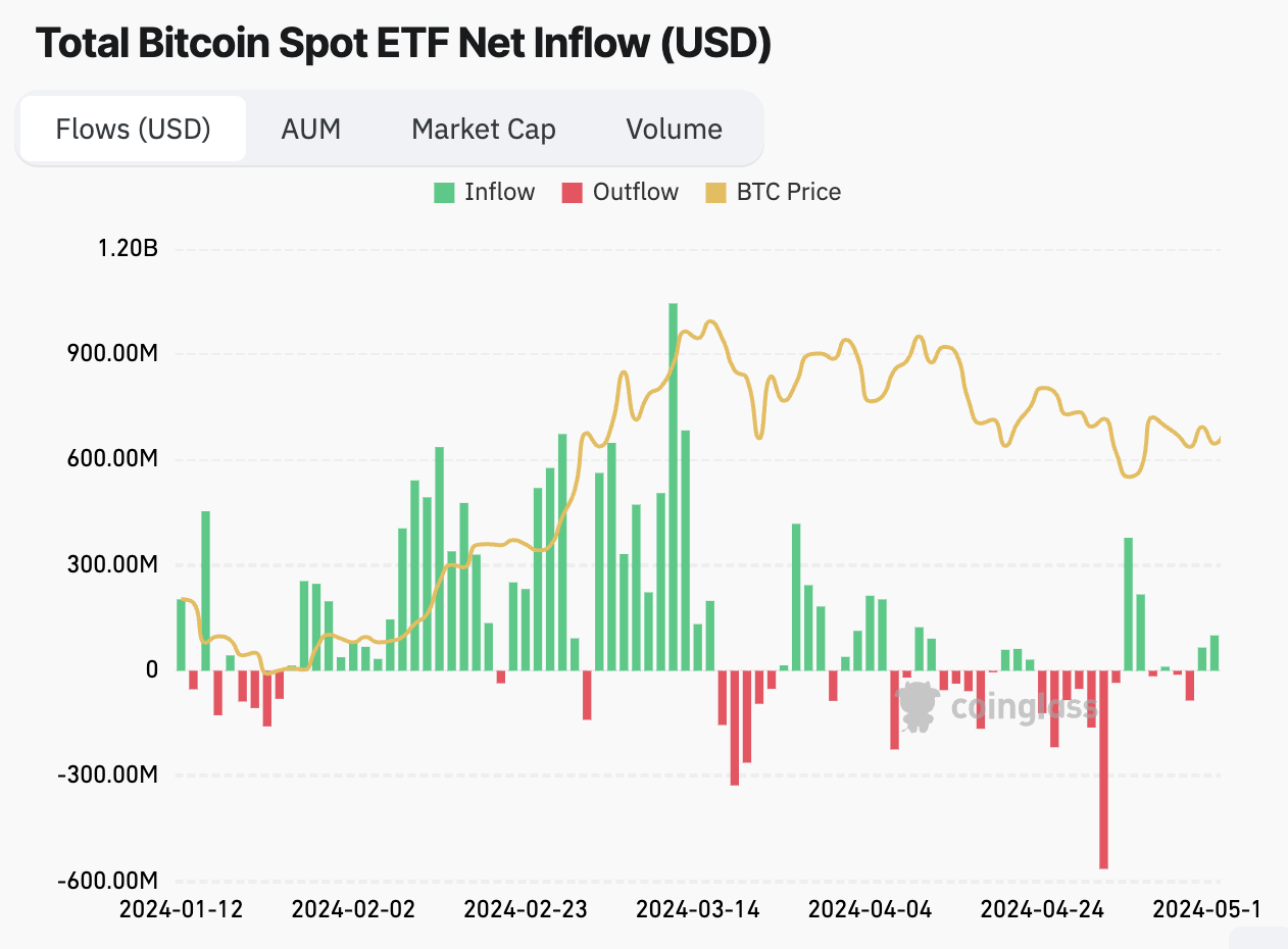 The last day with the most outflows from Bitcoin spot ETFs was May 10, when $84.70 million exited. On May 15, the BTC price rose by almost 7% following the revelation of inflation data in the United States.