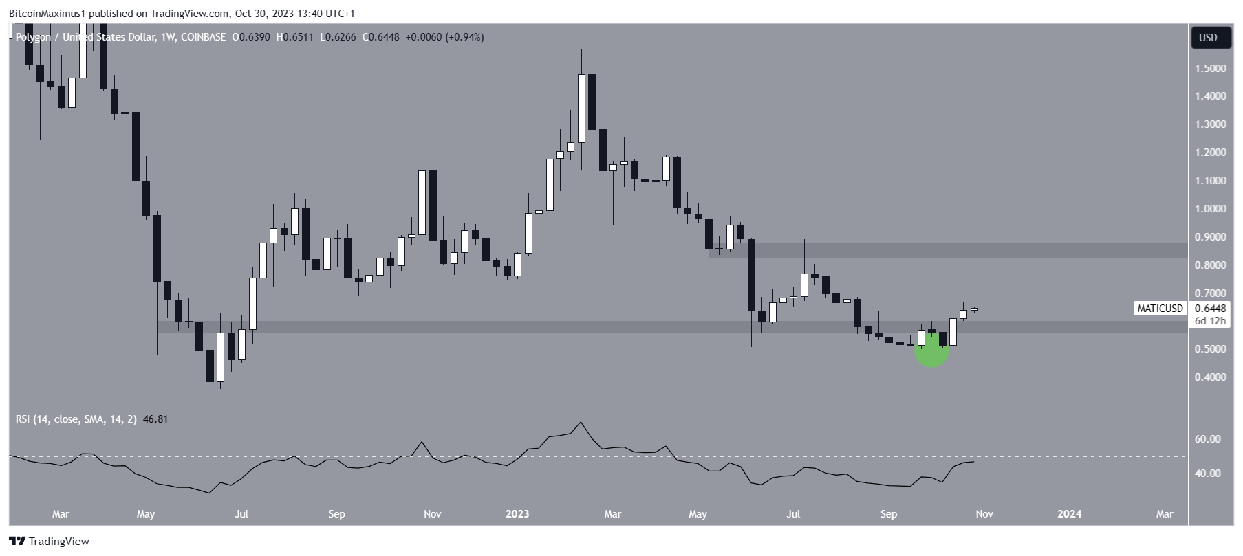 The weekly timeframe technical analysis shows that the MATIC price has increased during the past two weeks. The upward movement caused a reclaim of the $0.60 horizontal area.