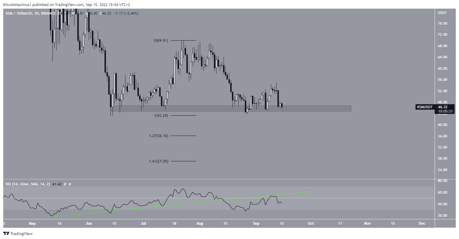 So, the price may break down. This possibility is supported by the weekly RSI, which is below 50 and consistently decreasing.