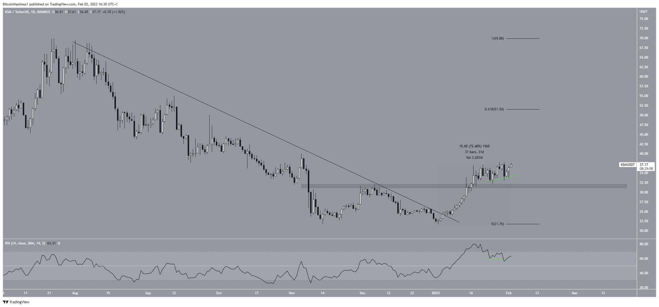 On the other hand, a daily close below the $31.50 support area would invalidate this bullish KSM token projection and could send the price to $25.
