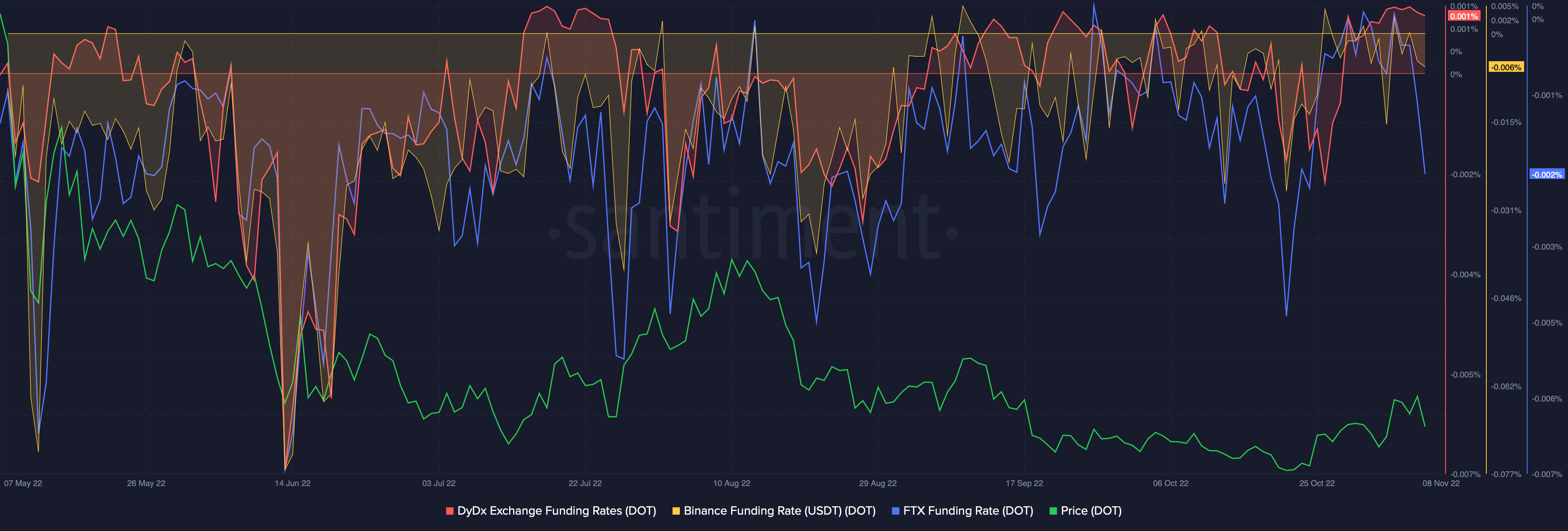 Perpetuals and futures markets also painted a bleak picture for the coin as funding rates for DOT turned negative.
