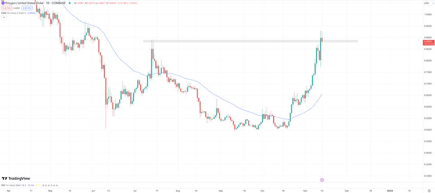 This surge in large transaction volume on Polygon has been one of the key contributors to MATIC’s rise above $0.90 for the first time since May.