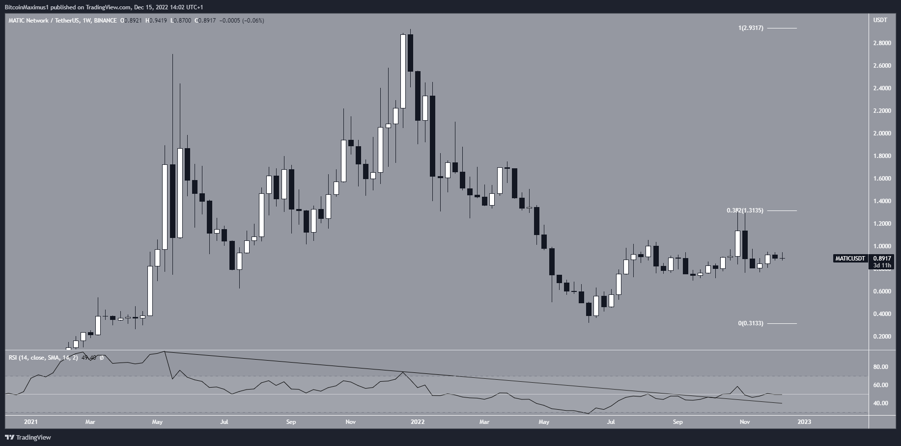 SponsoredMATIC price has fallen since reaching an all-time high price of $2.92 in December 2021. The downward movement led to a low of $0.31 in June 2022, after which a substantial bounce followed, leading to a high of $1.31 in October. Still, Polygon price has been decreasing since.