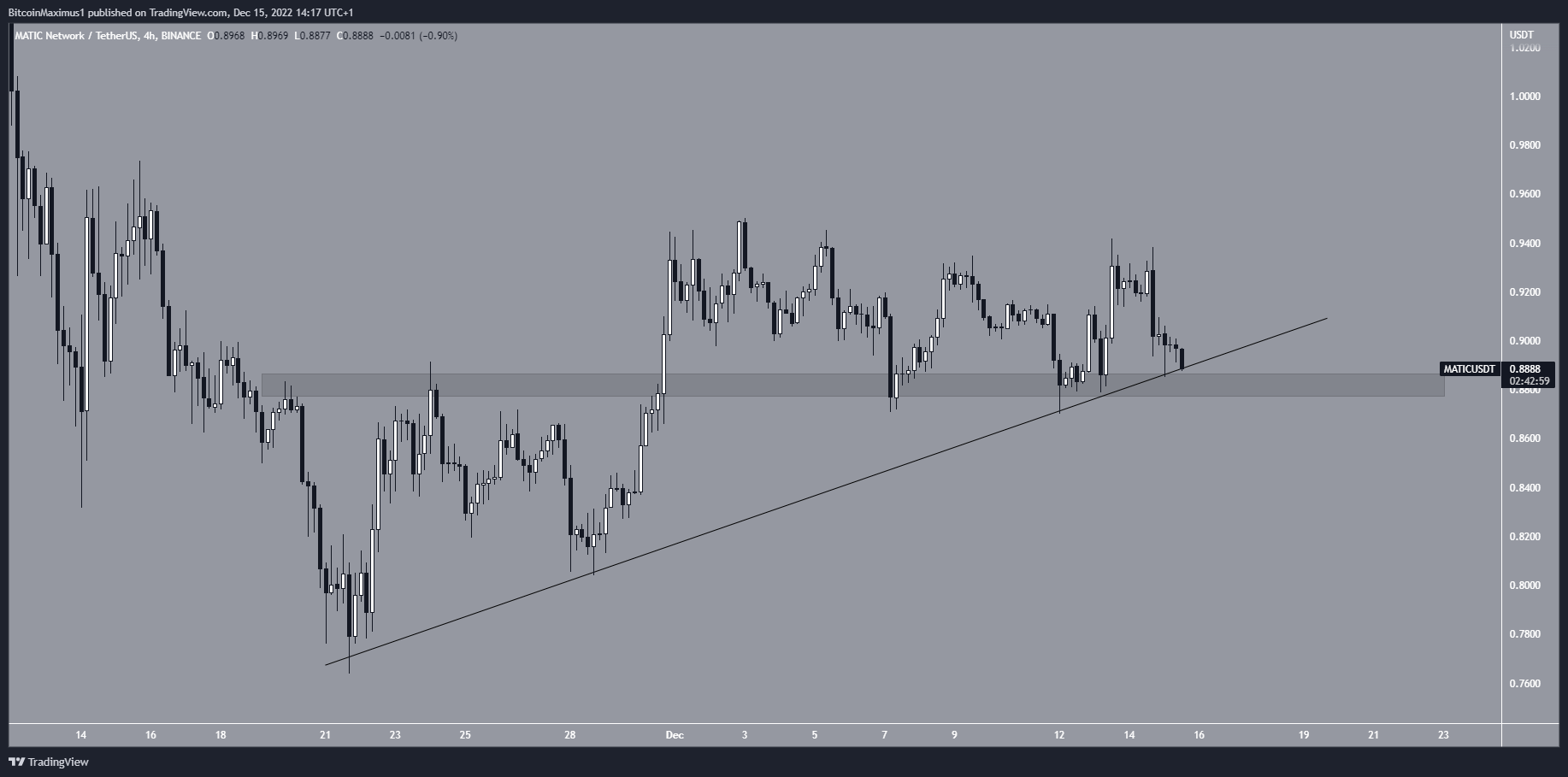 The technical analysis from the daily time frame shows that the MATIC token has followed an ascending support line since Sept. 16. If the Polygon breaks down from the support line, it could then drop toward the $0.75 support area.