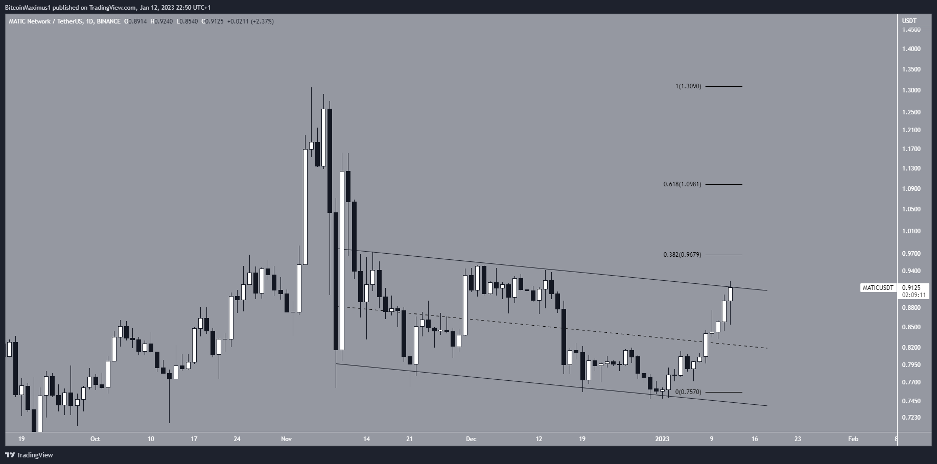 The shorter-term daily time frame is in alignment with the bullish reading. The Polygon price is in the process of breaking out from a descending parallel channel. Such channels usually contain corrective movements. Therefore, since the channel is facing downward, the most likely outlook is a breakout from it.