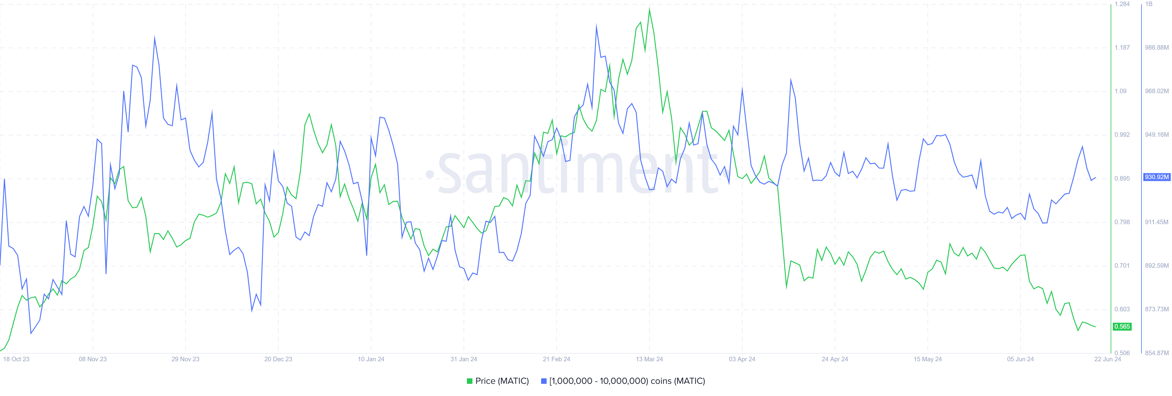 The addresses holding between 1 million and 10 million MATIC recently added to their holdings. In the last ten days, whales purchased about 33 million MATIC worth more than $18.6 million. This is a positive sign for the Polygon native token.