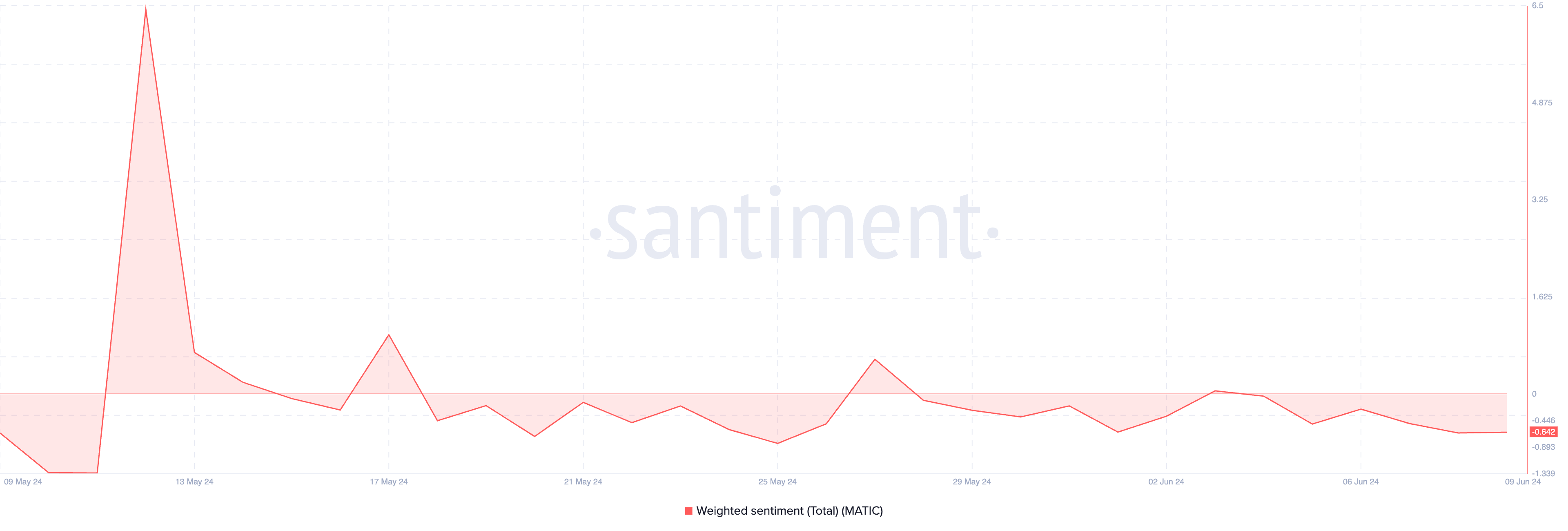 Since the beginning of the month, MATIC’s weighted sentiment has been predominantly negative. At press time, this was -0.64.