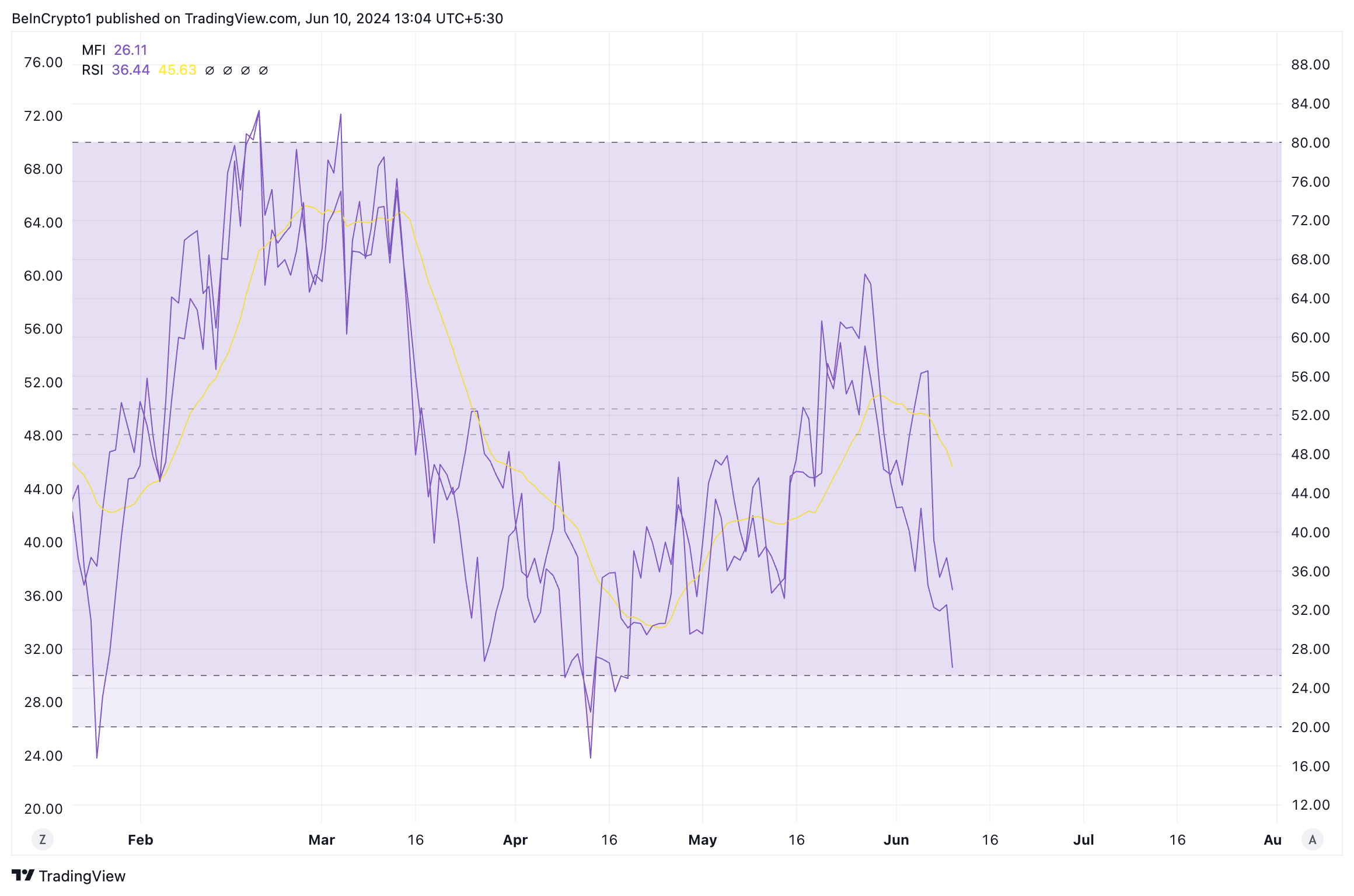 Readings from MATIC’s key momentum indicators showed an uptick in its sell-off among market participants. For example, its Relative Strength Index (RSI) was 36.44, while its Money Flow Index (MFI) was 26.11.