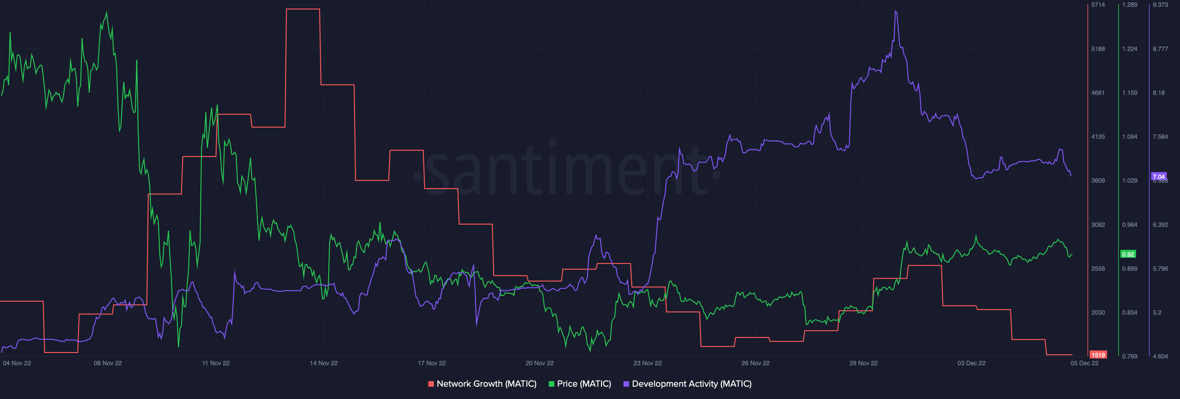 Between Nov. 27 and Dec. 1, the daily active address metric saw sustained growth alongside the MATIC price rise.