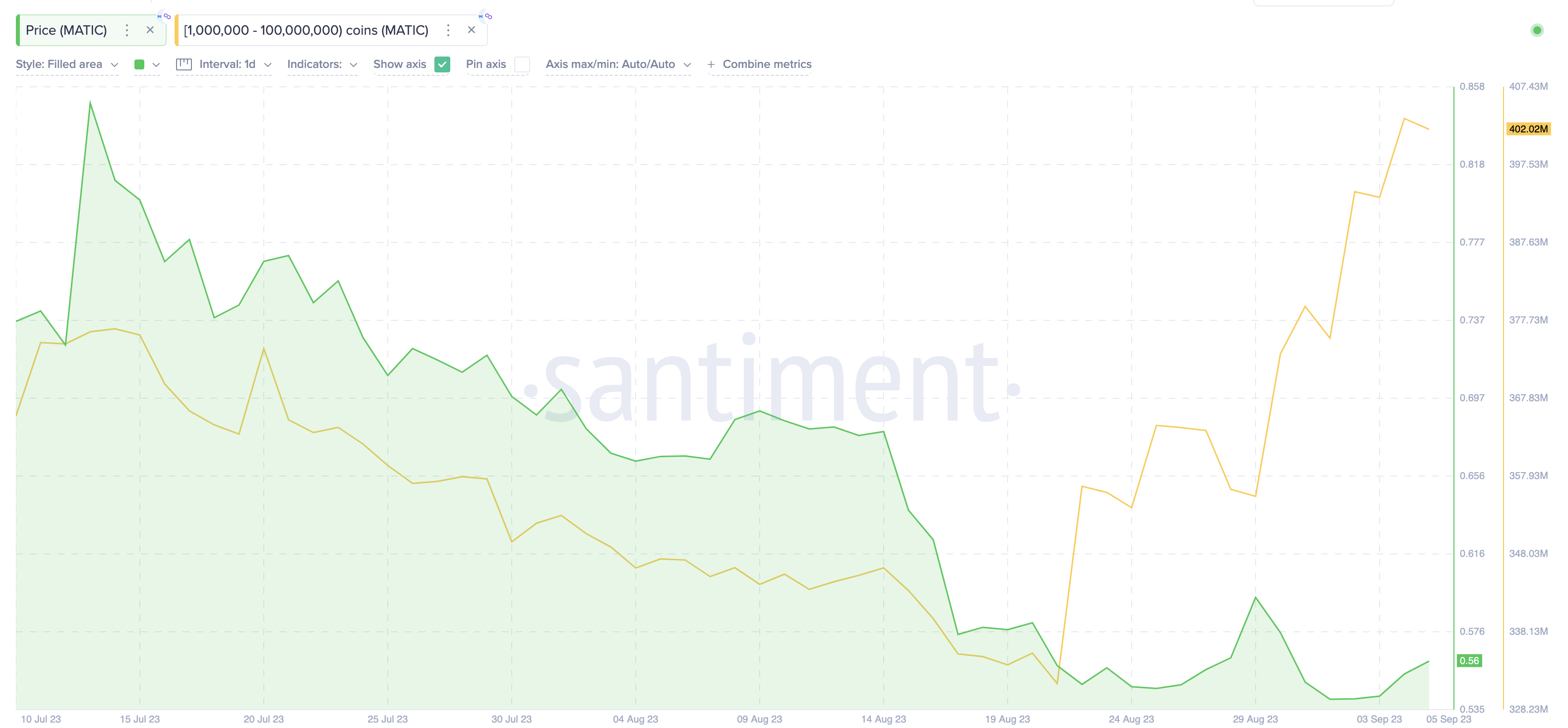 The Santiment chart below illustrates that a group of crypto whales with balances of 1 million to 100 million started buying around August 29. Specifically, between August 29 and September 4, they added 47 million MATIC tokens to their holdings.