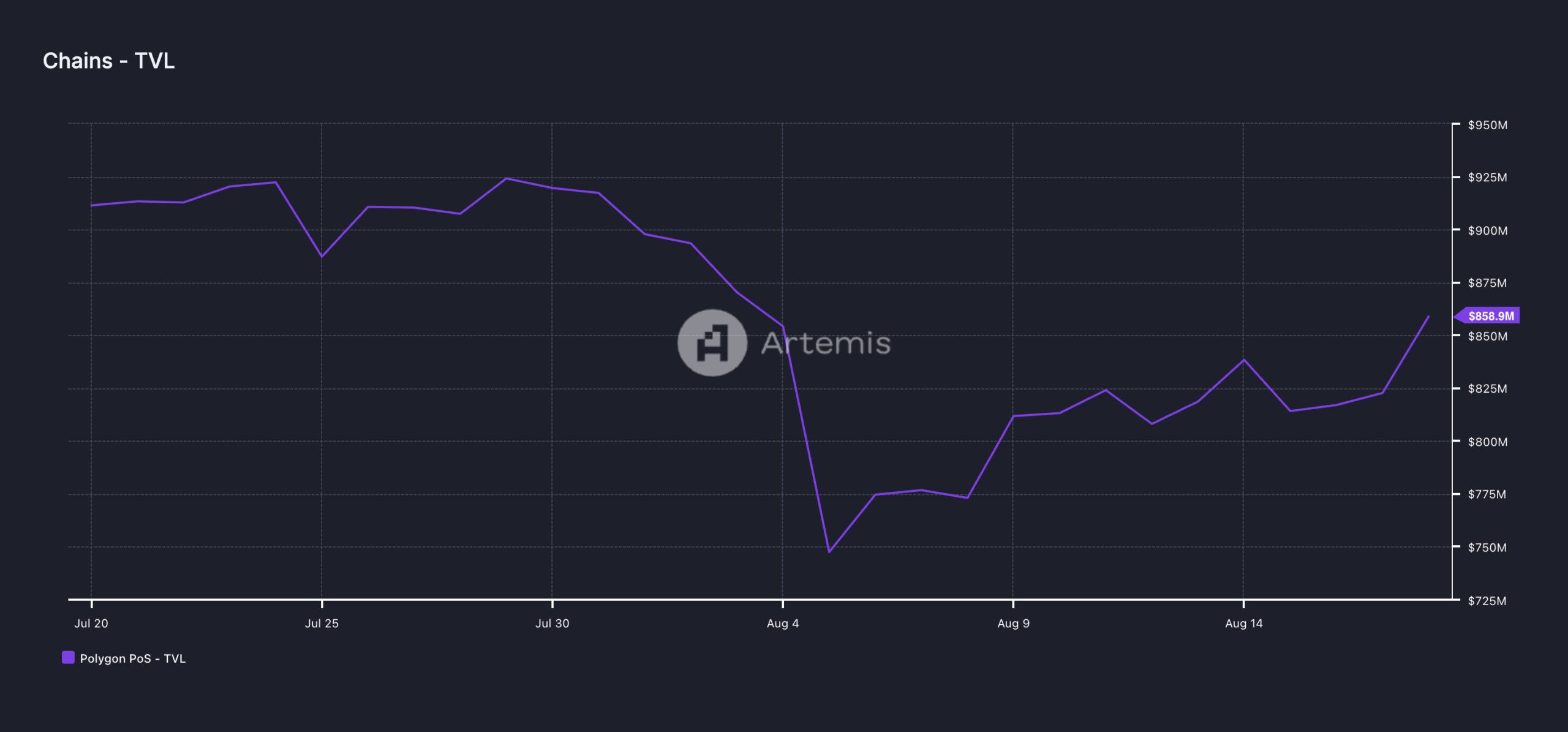 According to Artemis’ data, its TVL rose 5% to $859 million that day. Also, daily trading volume on the DEXes housed within the L2 increased by 21%. As of this writing, Polygon’s daily DEX trading volume is $69 million.