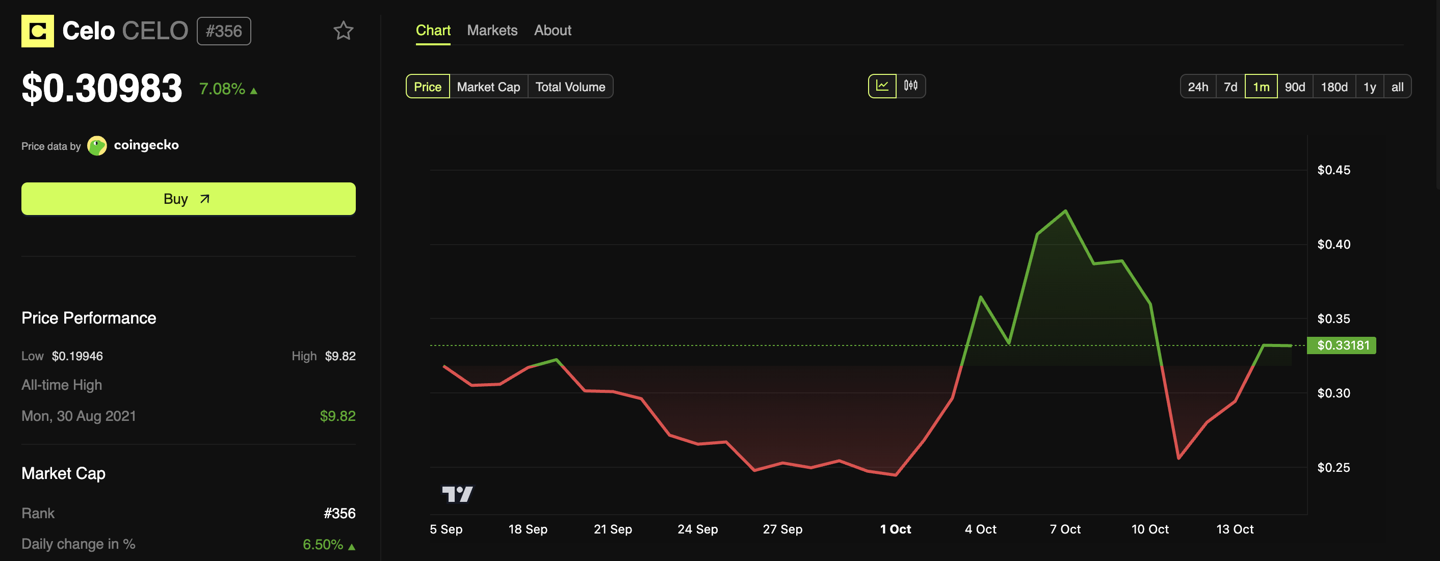 CELO is also rallying on growing privacy coin trends. The altcoin has spiked to $0.30, marking a 7.08% daily increase.