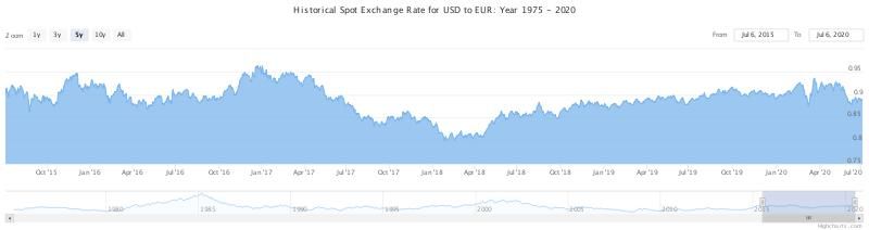 Over the past five years, euro strength has remained roughly the same when compared with the U.S. dollar. Its strength notably benefits other countries outside the E.U. Certain currencies such as the African CFA franc have their prices pegged to the euro.
