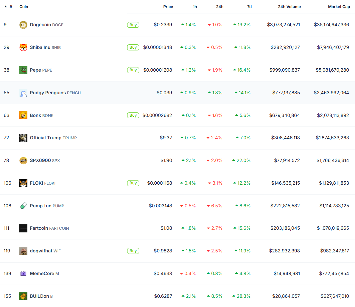 PUMP price has increased by a modest 0.8% in the last 24 hours and was trading for $0.003364 as of this writing. CoinGecko data shows the meme coin is underperforming relative to its peers in the sector.