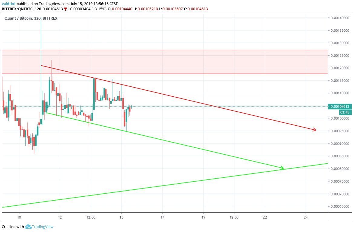 On May 31, 2019, the Quant price reached a low of 21,600 satoshis. A gradual upward move ensued, which is still continuing.