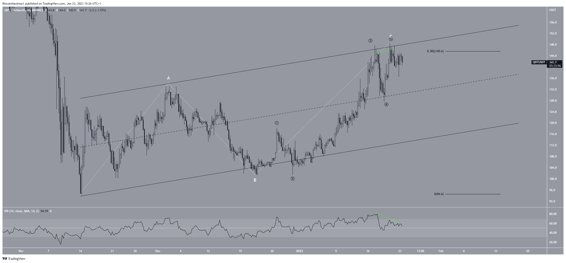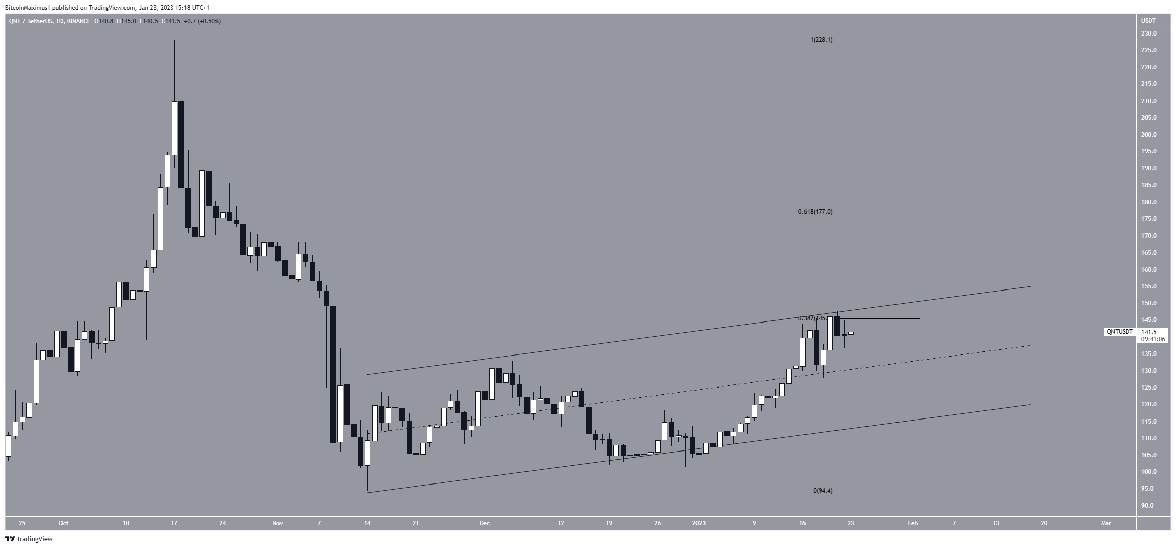 The Quant price has increased inside a long-term ascending parallel channel since Nov. 14, 2022. Such channels usually contain corrective movements, meaning that an eventual breakdown from it would be expected. While trading in the channel, QNT reached a maximum price of $148.70.