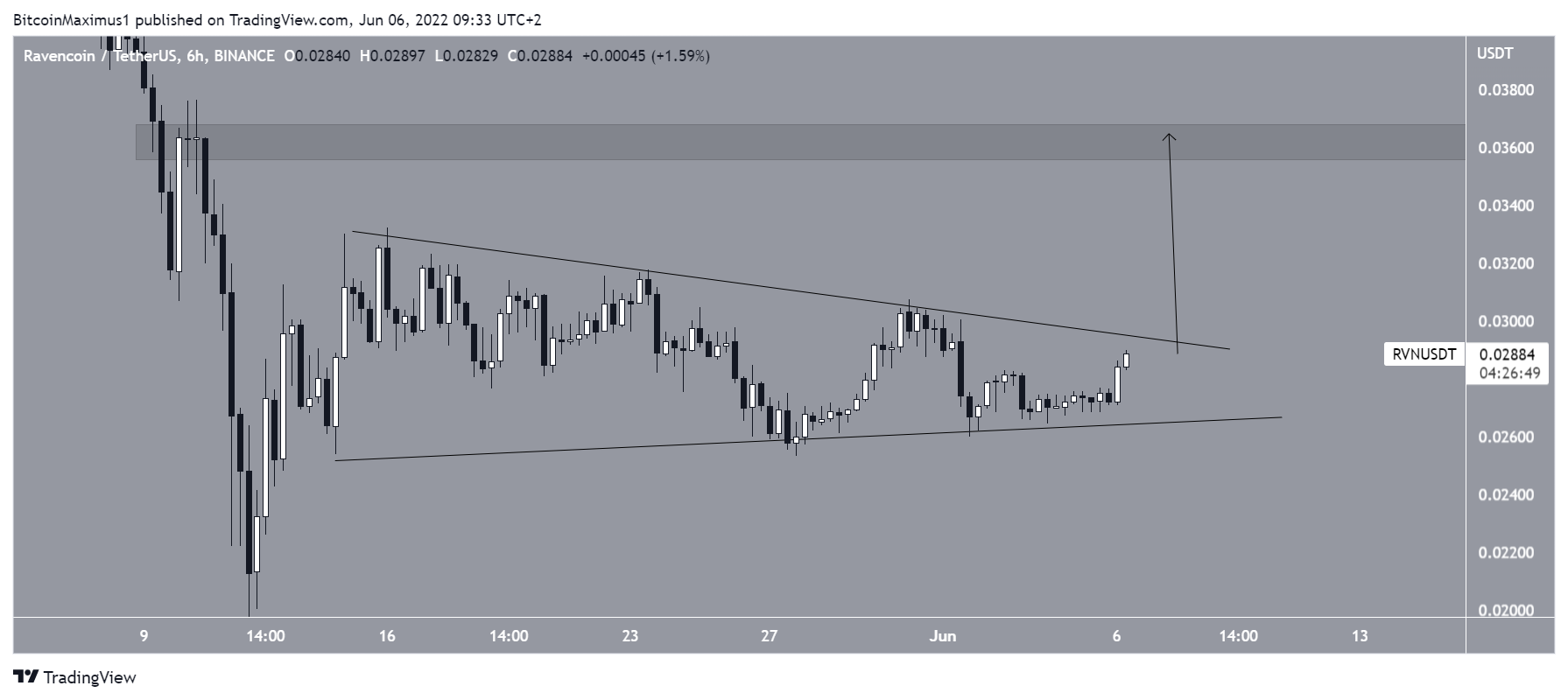 Finally, the six-hour chart shows that RVN has been trading inside a symmetrical triangle since May 16. While this is considered a neutral pattern, it is transpiring after an upward movement. So, it is possible that it will lead to a breakout.