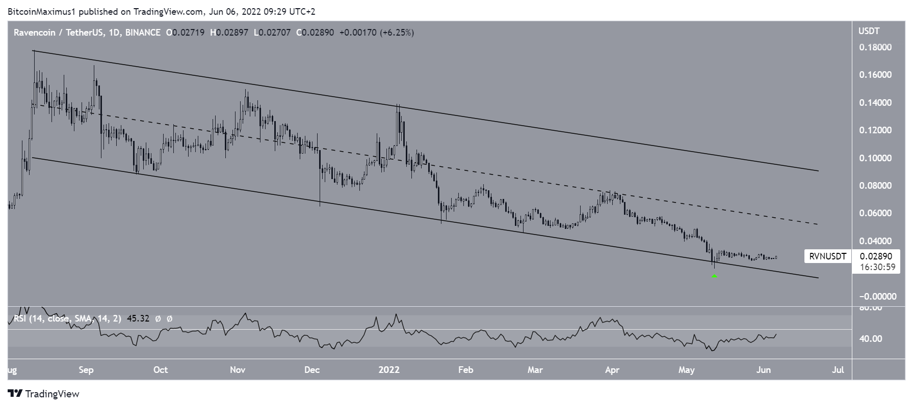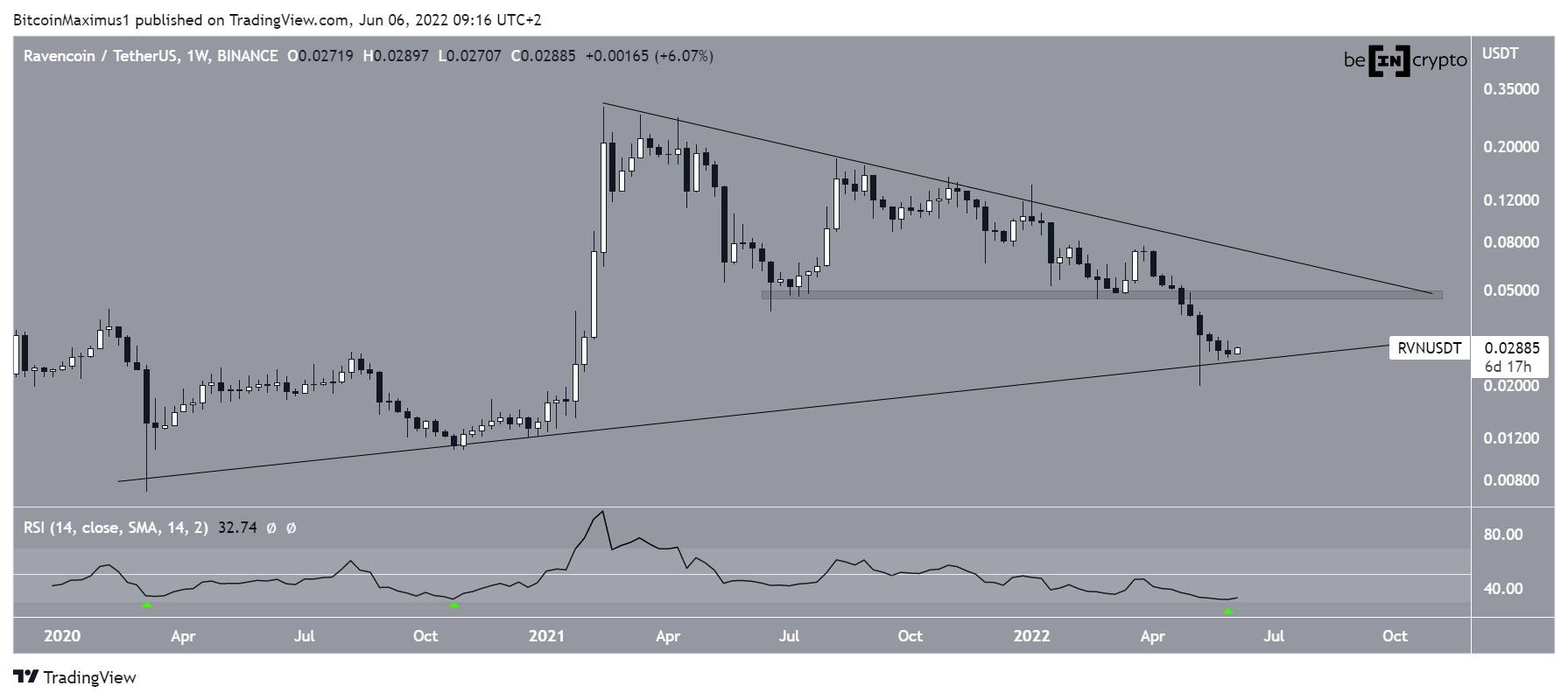 After breaking down from a long-term horizontal support level, Ravencoin (RVN) reached a low of $0.019 and validated an even longer-term ascending support line.