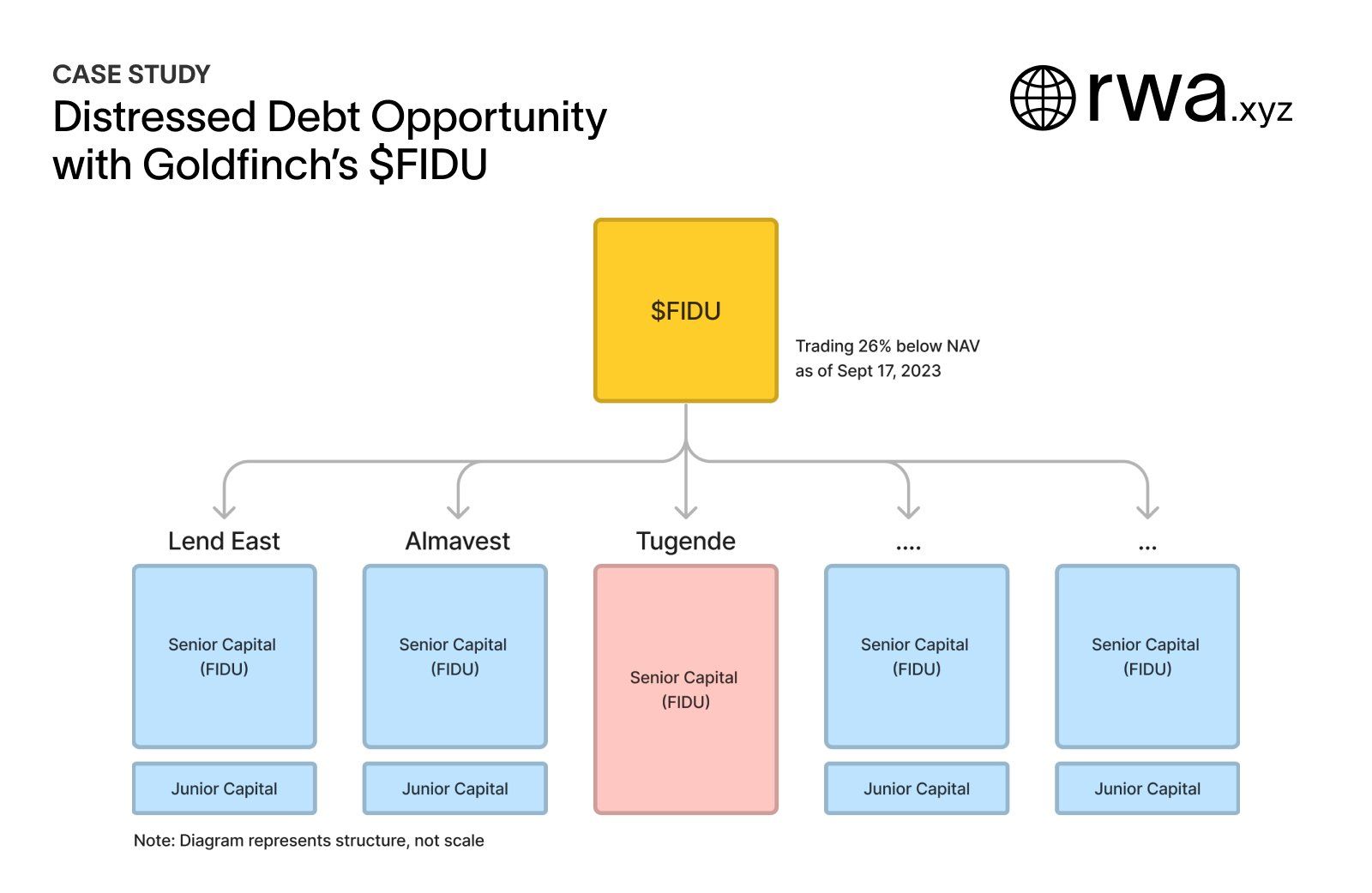 Decentralized credit protocol Goldfinch’s FIDU token has been trading at a discount to net asset value (NAV). This has created a “distressed debt opportunity,” according to RWA analysts.
