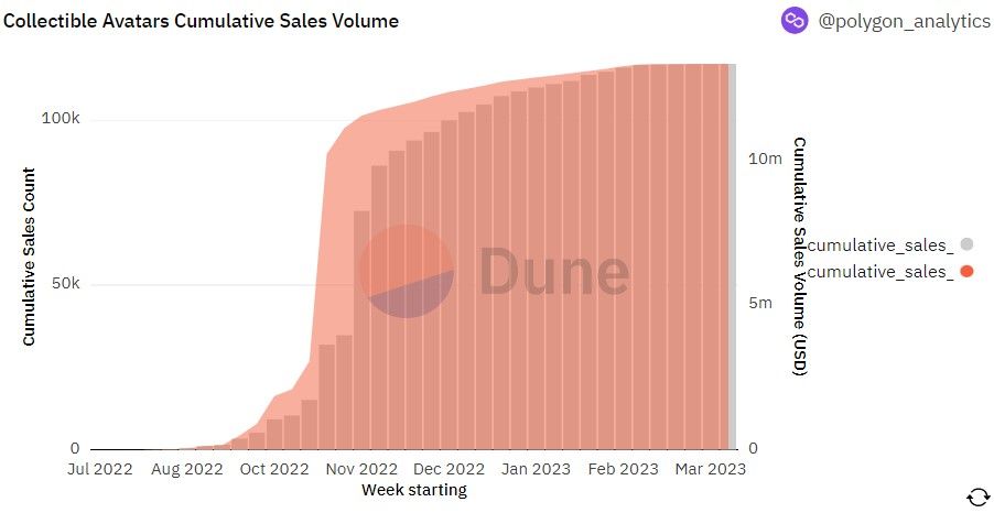 According to the Dune Analytics dashboard, there are over 10.6 million distinct collectible avatars and over 7.3 million Reddit avatar holders. The market capitalization of the collection is close to $74.5 million.