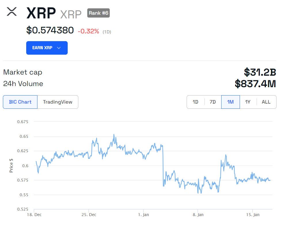 XRP is currently trading flat on the day and the past week at $0.574 at the time of press.