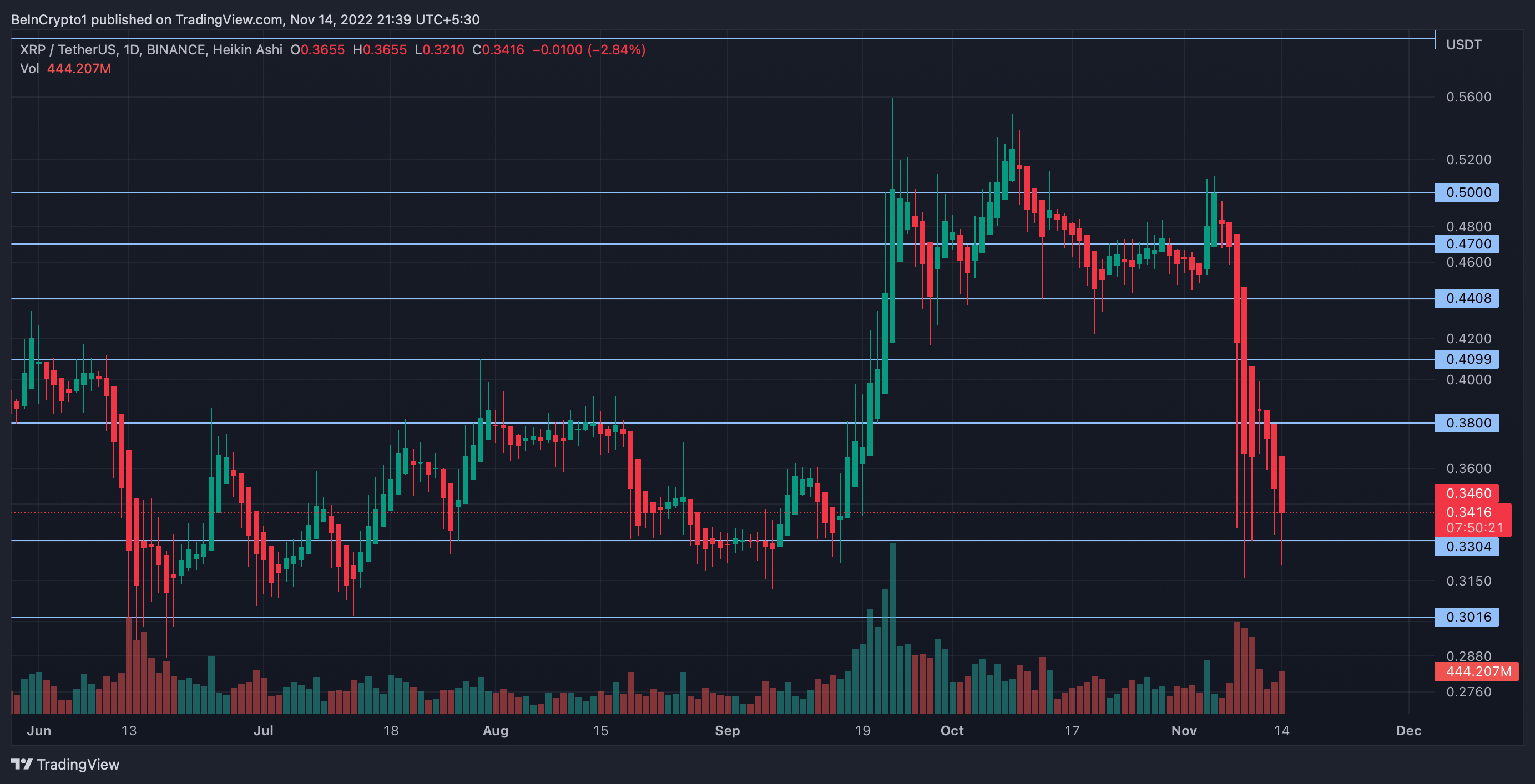 SponsoredHowever, larger market blues and the recent FTX collapse significantly affected XRP price, bringing it down to $0.3436 at press time.