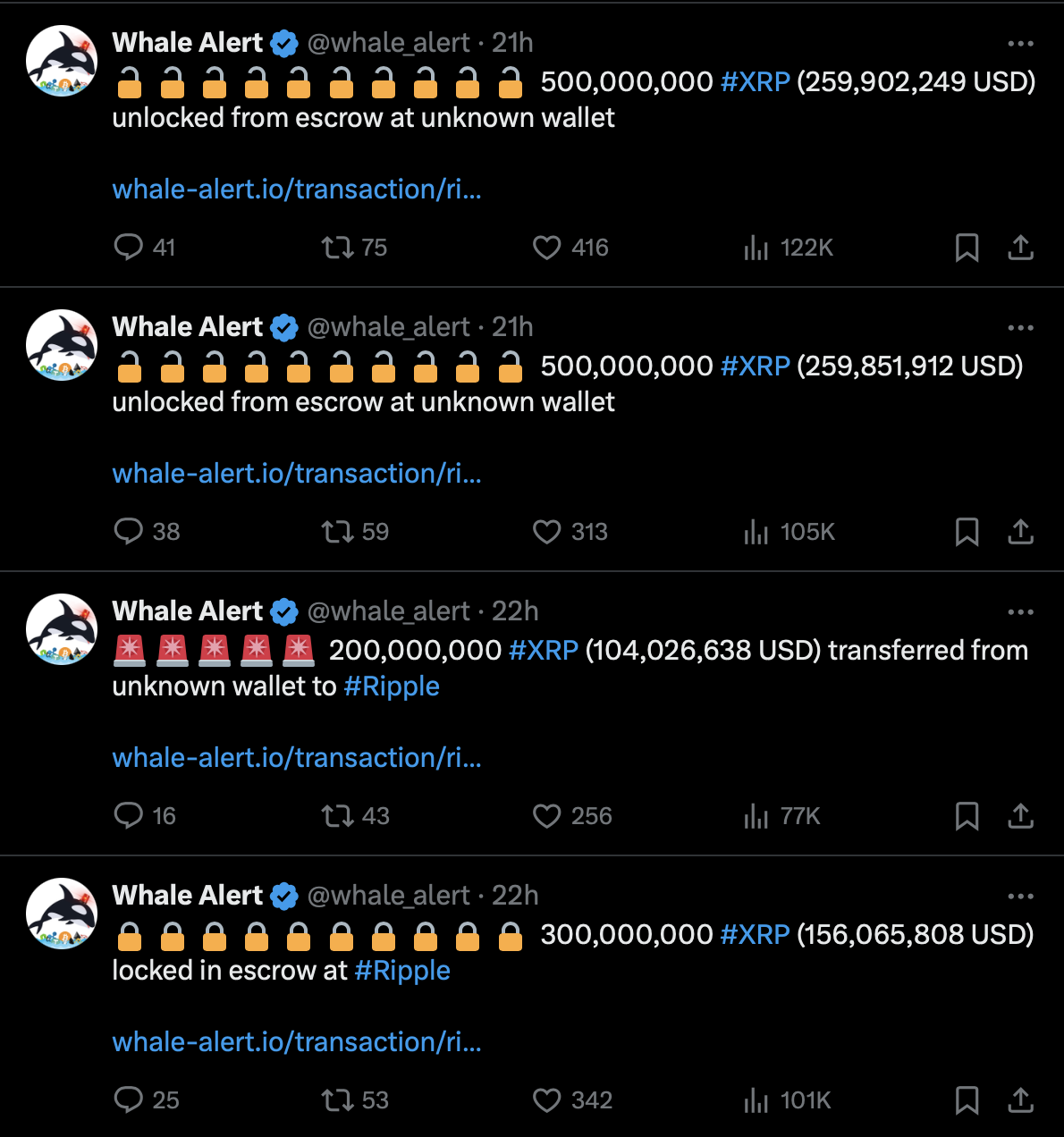 Typically, Ripple releases around 1 billion XRP tokens from its escrow wallet at the beginning of each month. However, this month’s unusual asset movements have surprised the community, leading to various speculations about these transactions.