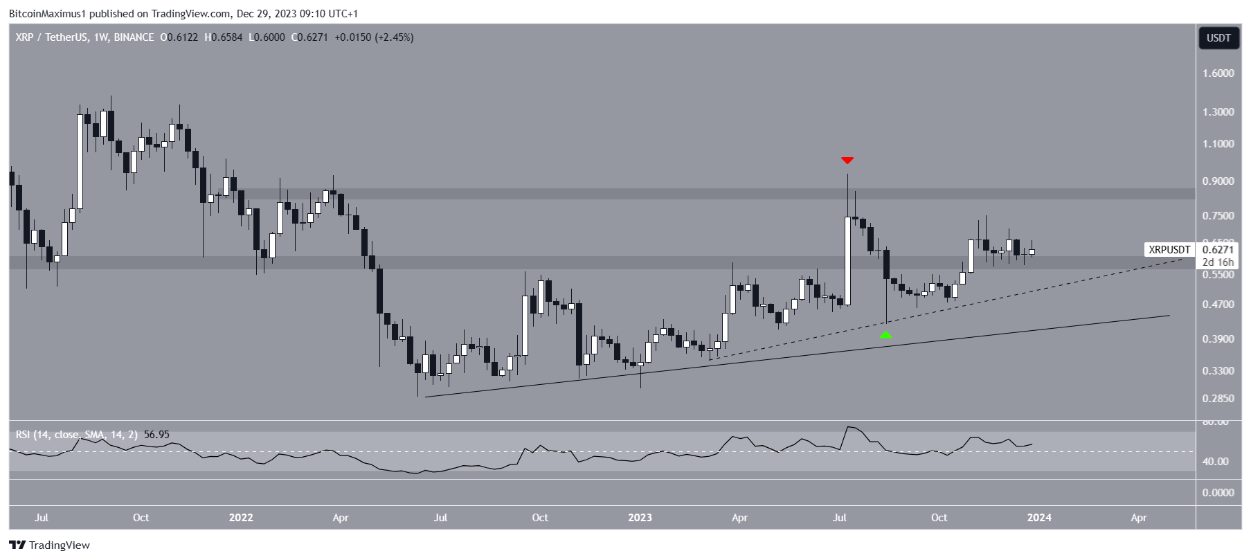 The weekly time frame technical analysis shows that XRP has followed an ascending support line since May 2022.