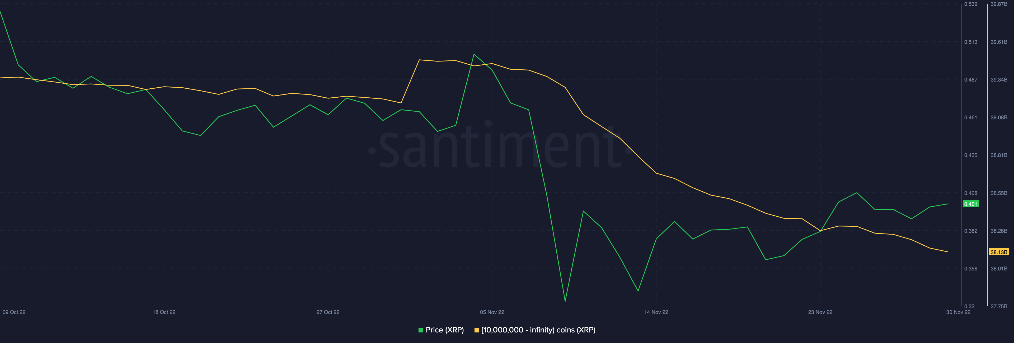 SponsoredFurthermore, the largest Ripple whale cohort holding 10 million to infinity coins, was still reducing their bags. The cohort has liquidated over 1 billion in XRP since Nov. 6. If this cohort reverses its trend, the same could lead to a significant price uptick.
