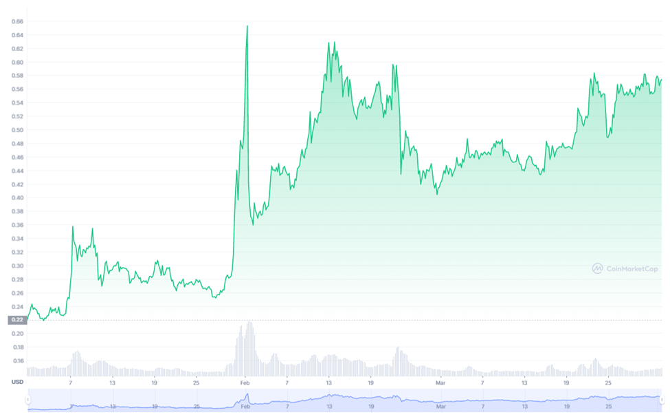 On the other hand, XRP opened on Jan. 1, 2021, with a trading price of $0.220, reached a quarterly high of $0.745, and closed the first quarter of 2022 at a price of $0.574.