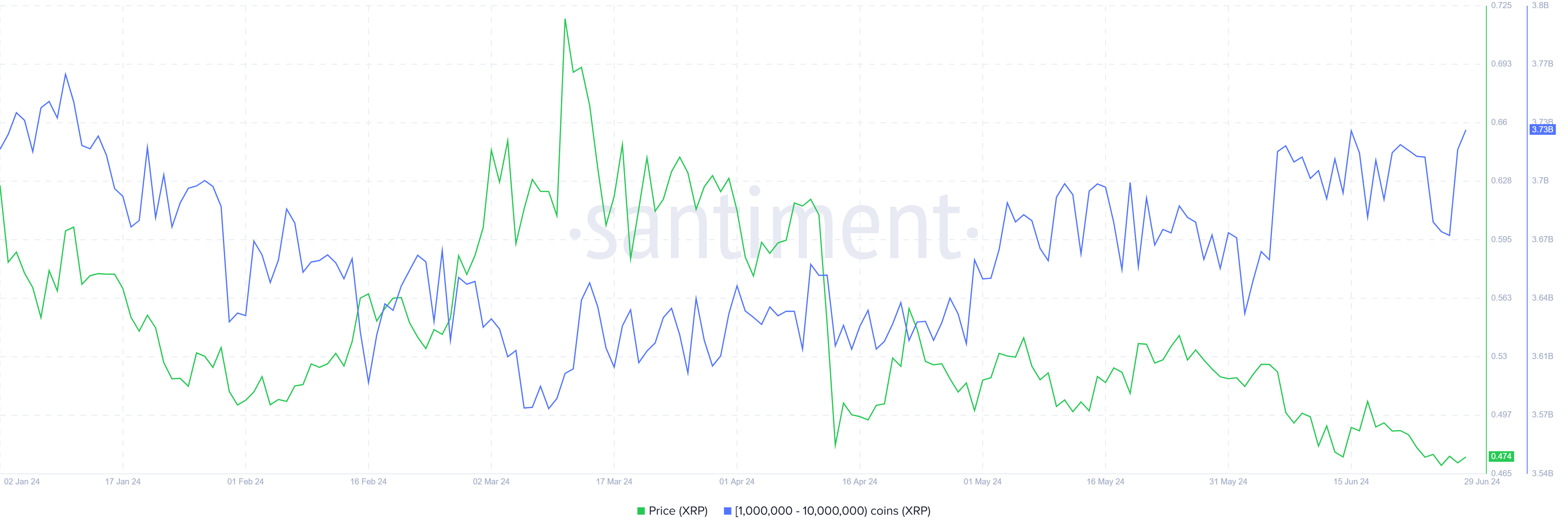 XRP price, trading at $0.474 at the time of writing, is around the crucial support at $0.473. Despite massive accumulation by the whales, the aforementioned cues support sideways momentum for the altcoin.